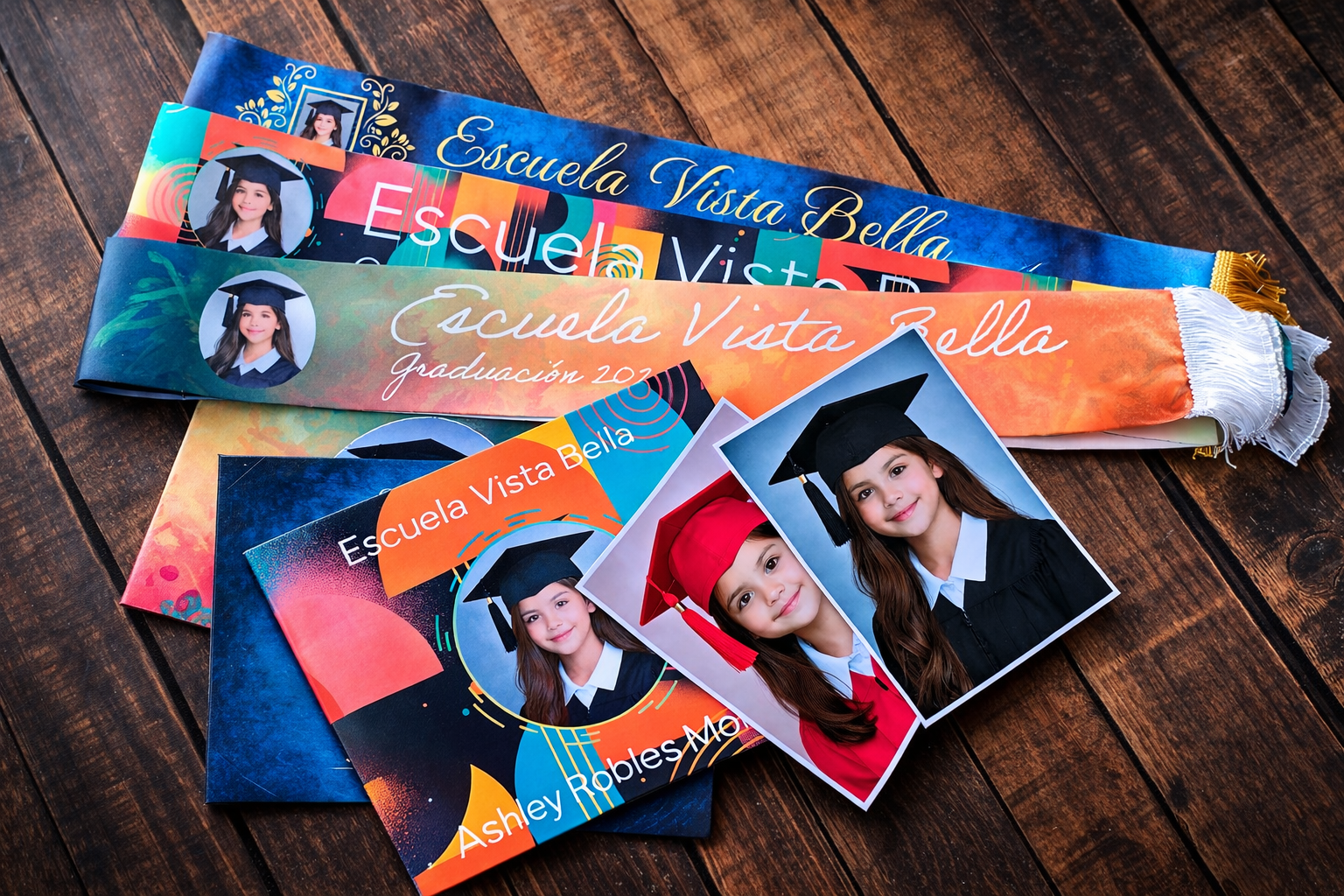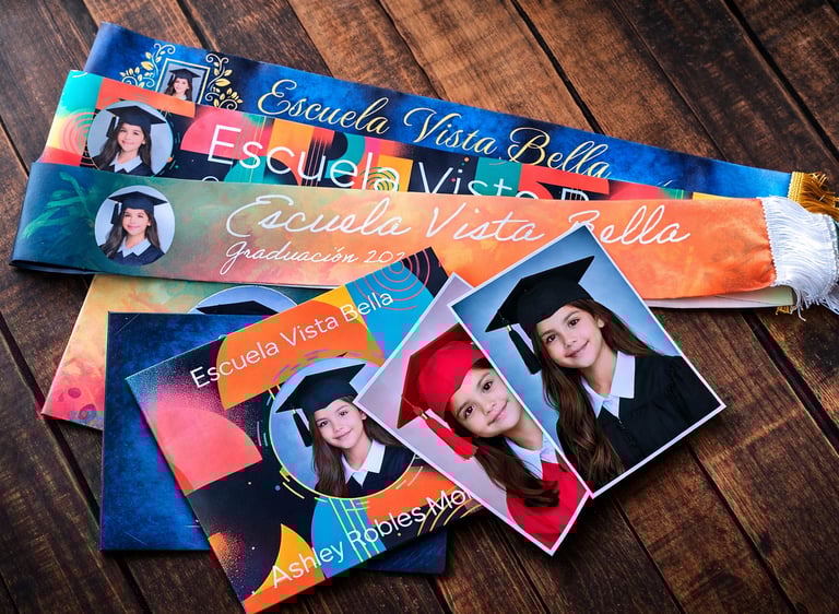Si ya haces sesiones de graduación y quieres llevar tu trabajo al siguiente nivel, te ofrecemo el servicio de producción del paquete completo listo para entregar: portatítulos personalizados, cintas personalizadas, impresión fotográfica y extras.